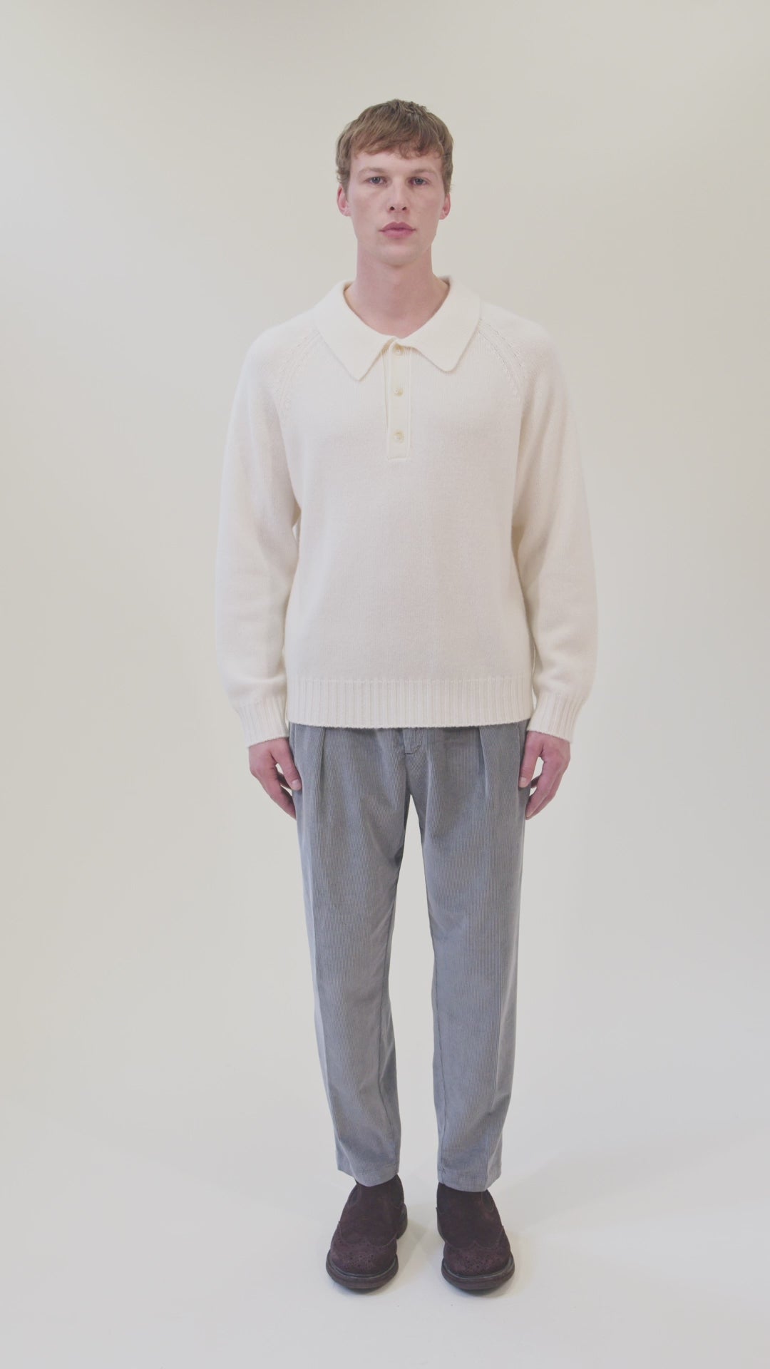 Maglia polo rasata con spalla raglan e chiusura a 3 bottoni. Finezza 5 - 3 fili.