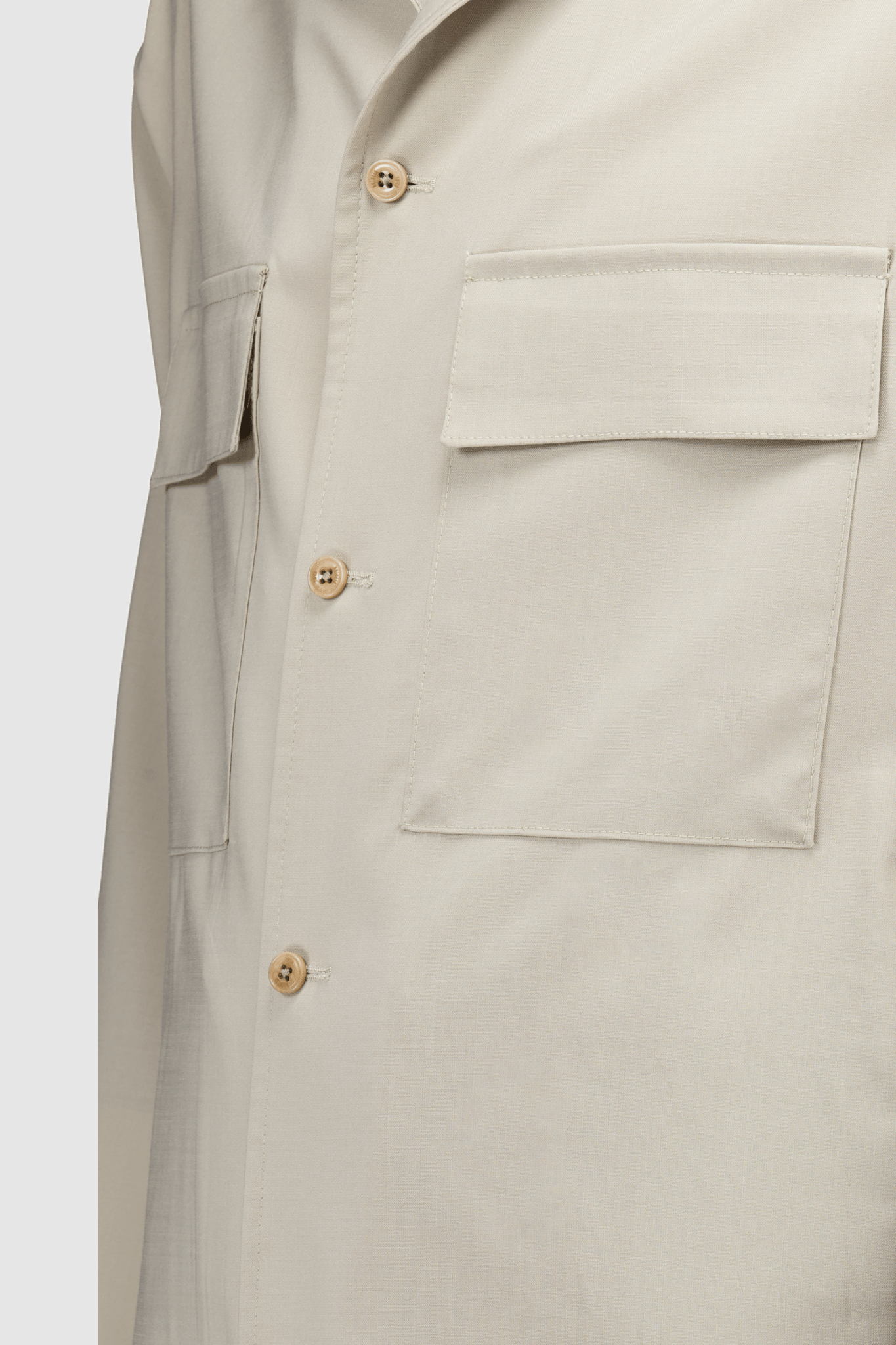 Overshirt con sei bottoni e due tasche applicate. Il modello è alto 188 cm e indossa la taglia 50.