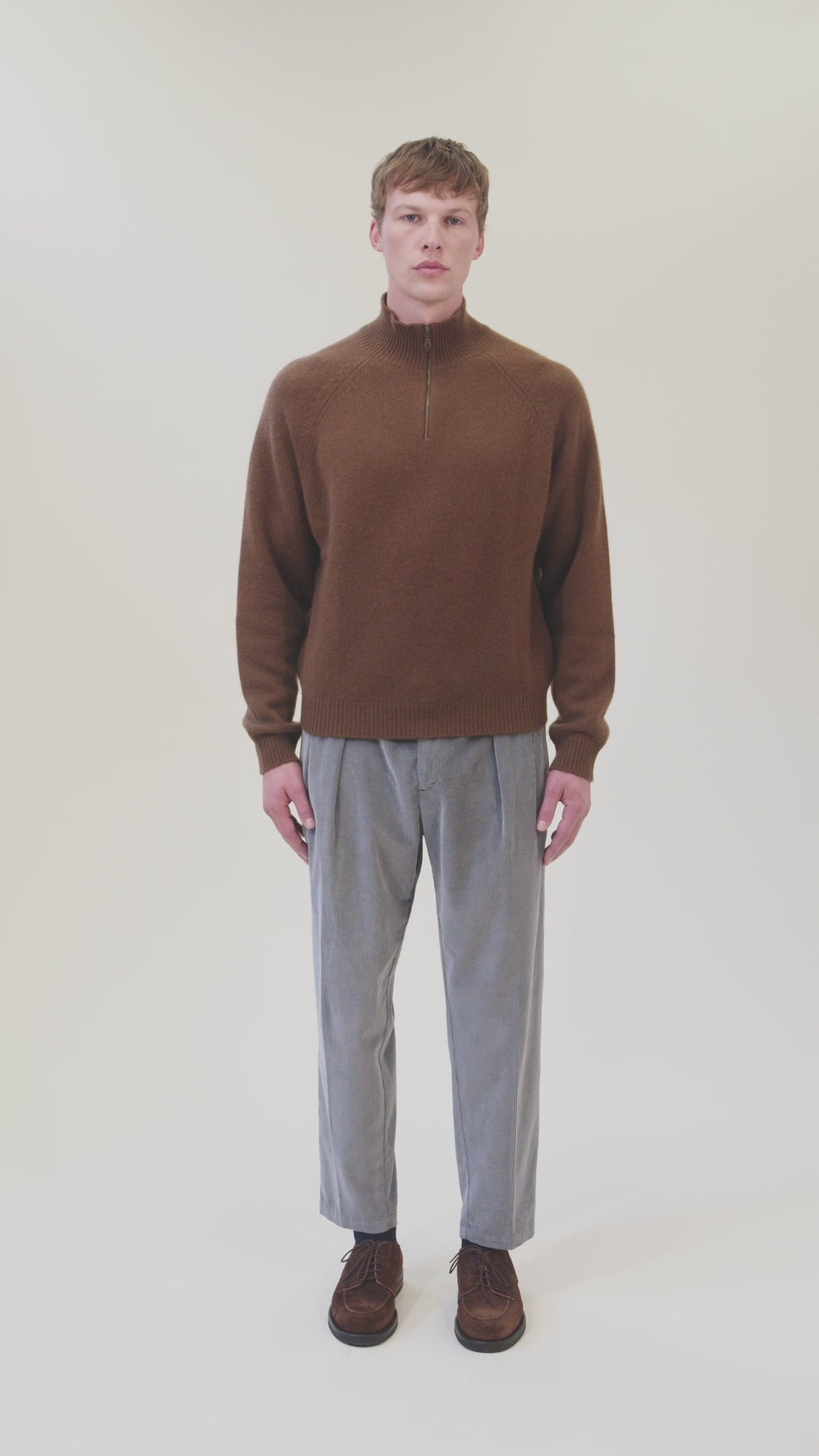 Maglione a collo alto con spalle raglan in misto lana e cachemire, elegantemente lavorato, con chiusura a zip centrale e maglia liscia a 3 strati da 5 gauge.