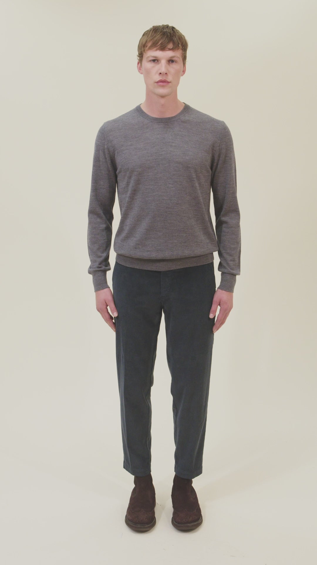 Pantaloni chino in velluto a coste elegantemente lavorati, con tasche americane e una raffinata chiusura a zip. La sofisticata texture millerighe eleva questa silhouette senza tempo.