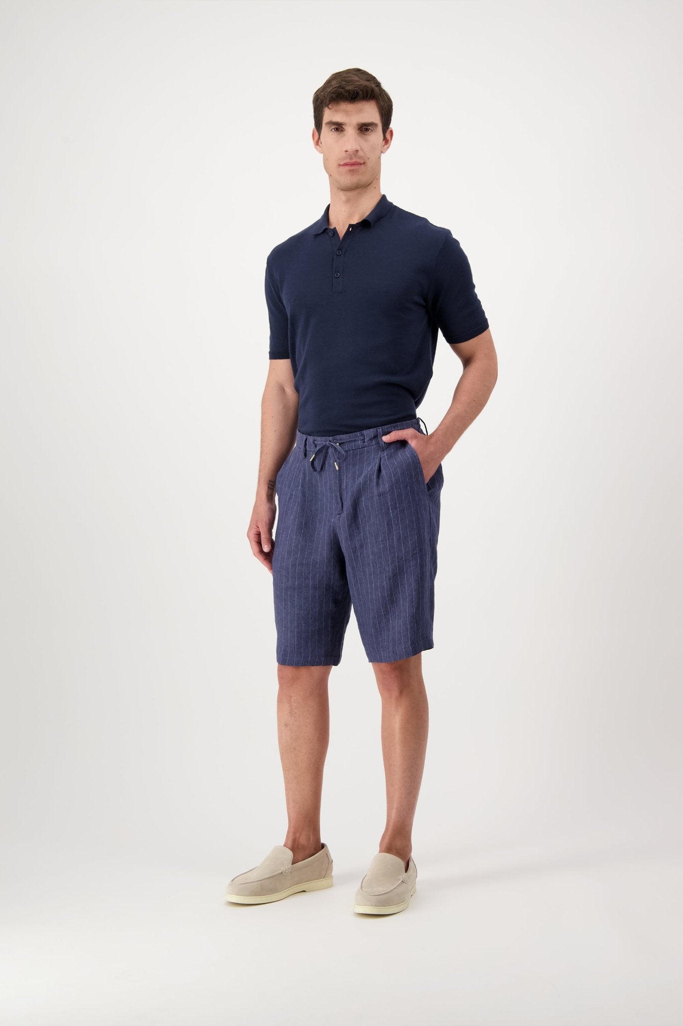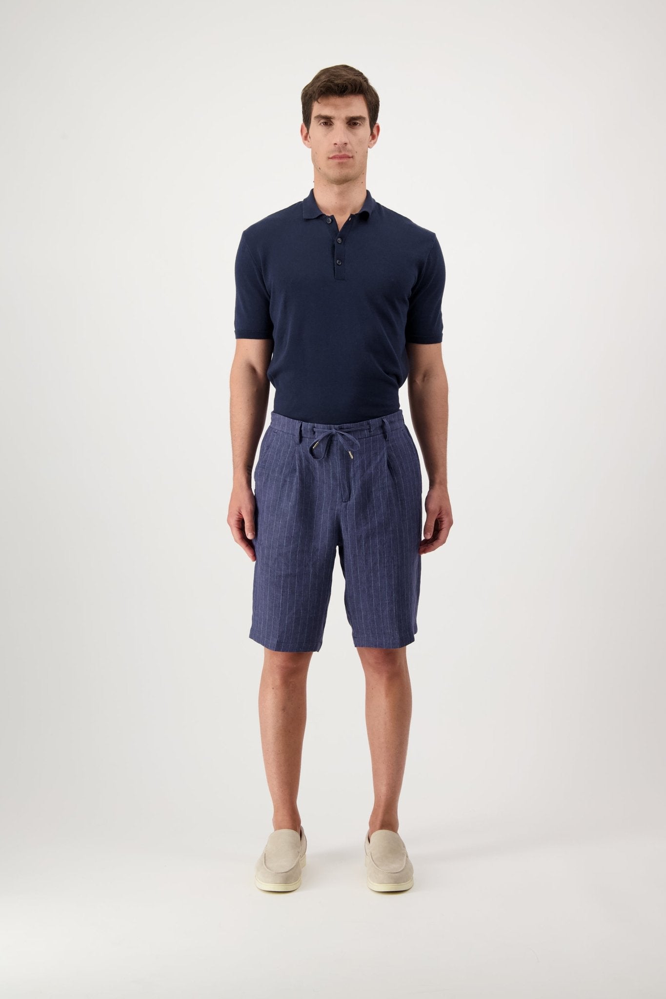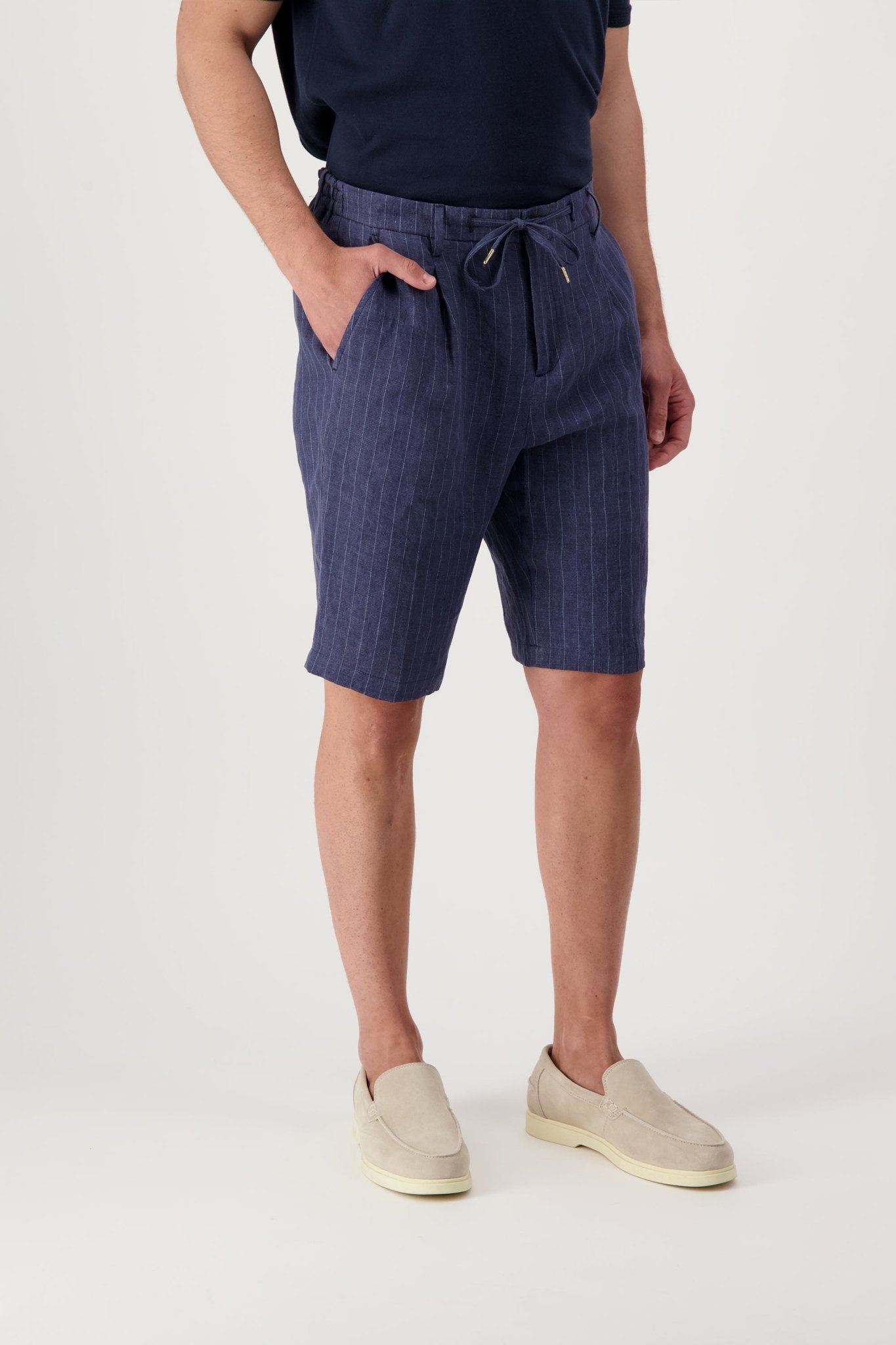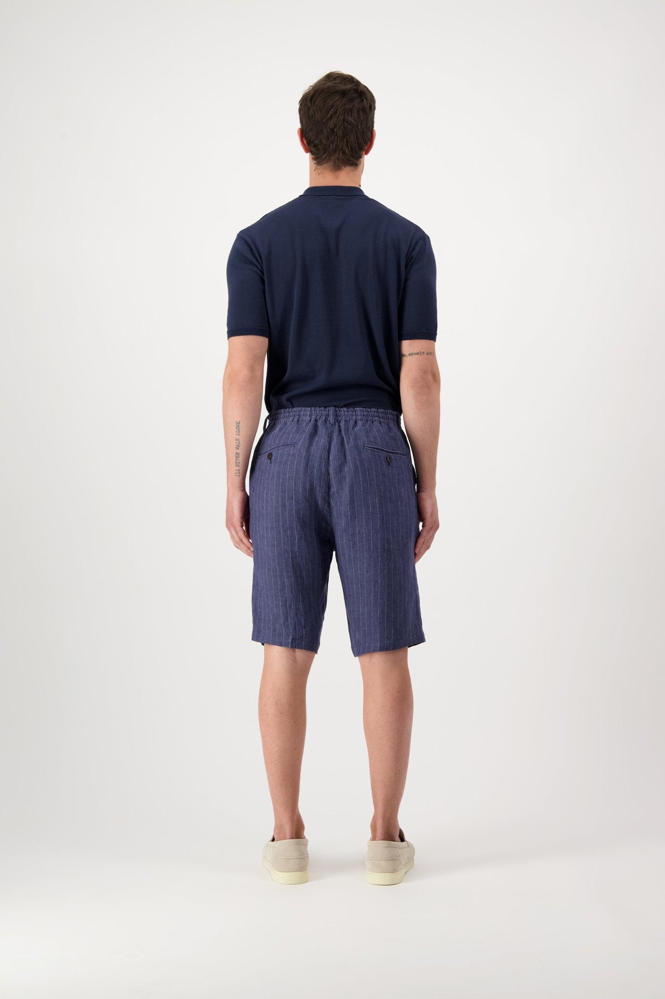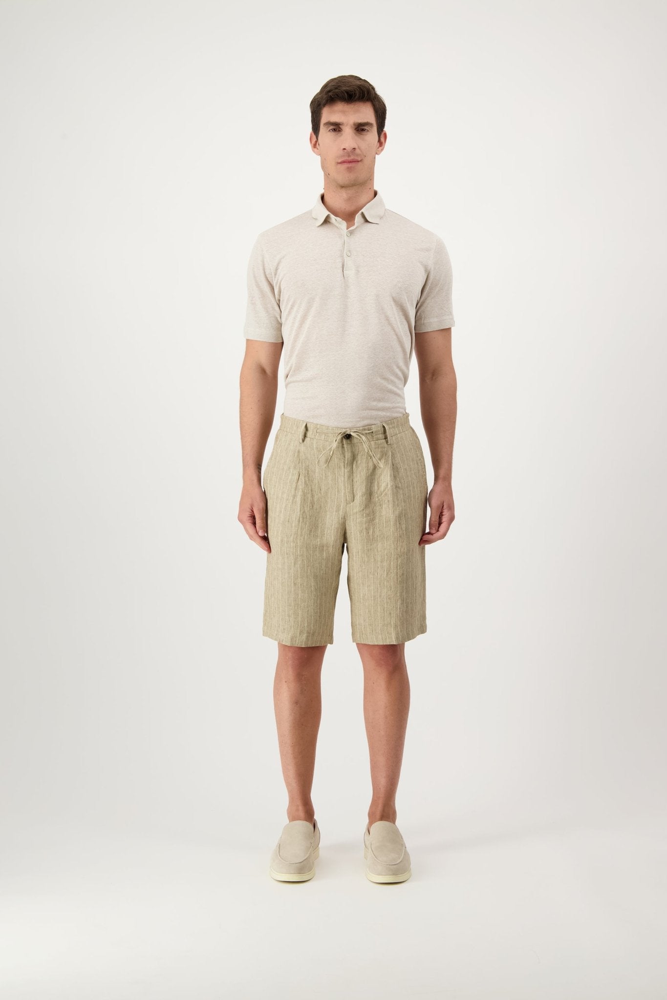 Pantaloncino in lino con tasche America e chiusura con zip. Il modello è alto 188 cm e indossa la taglia 50.