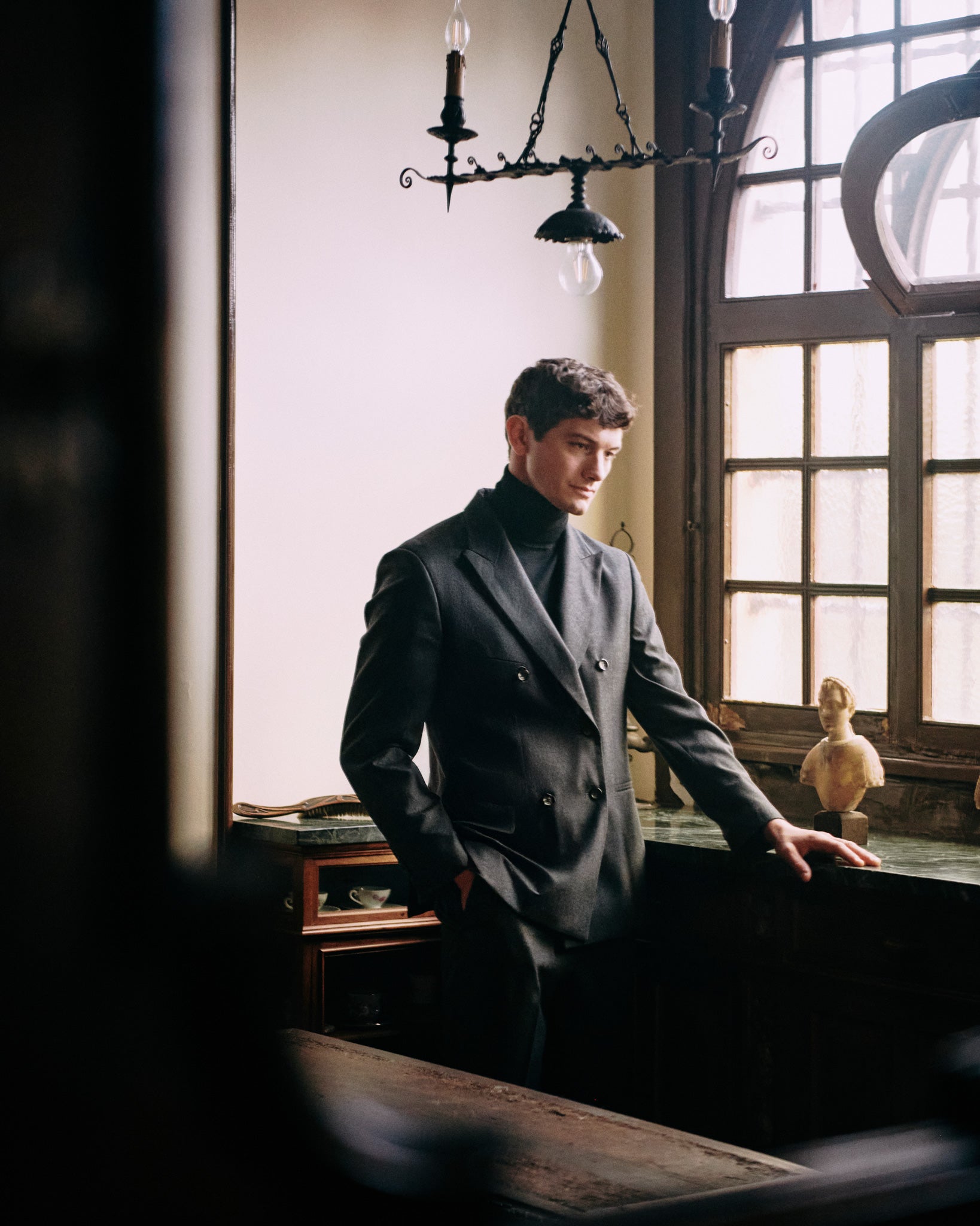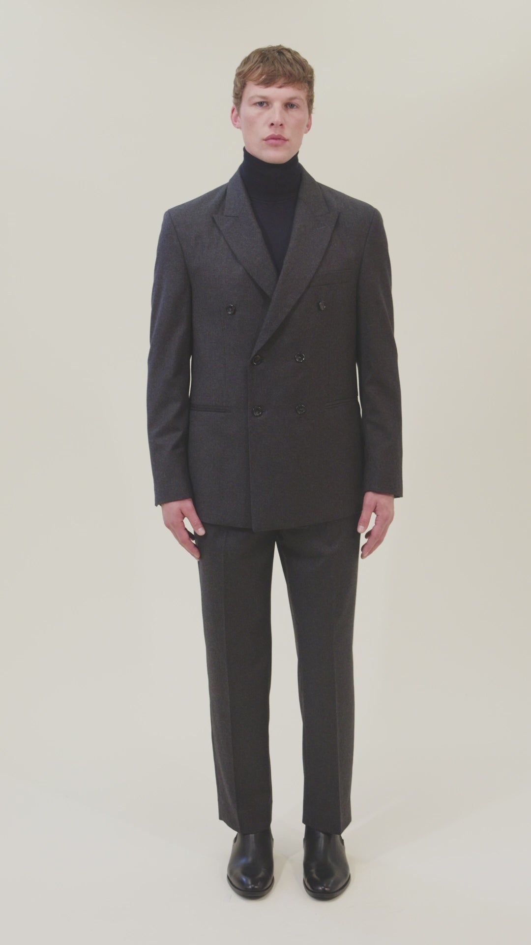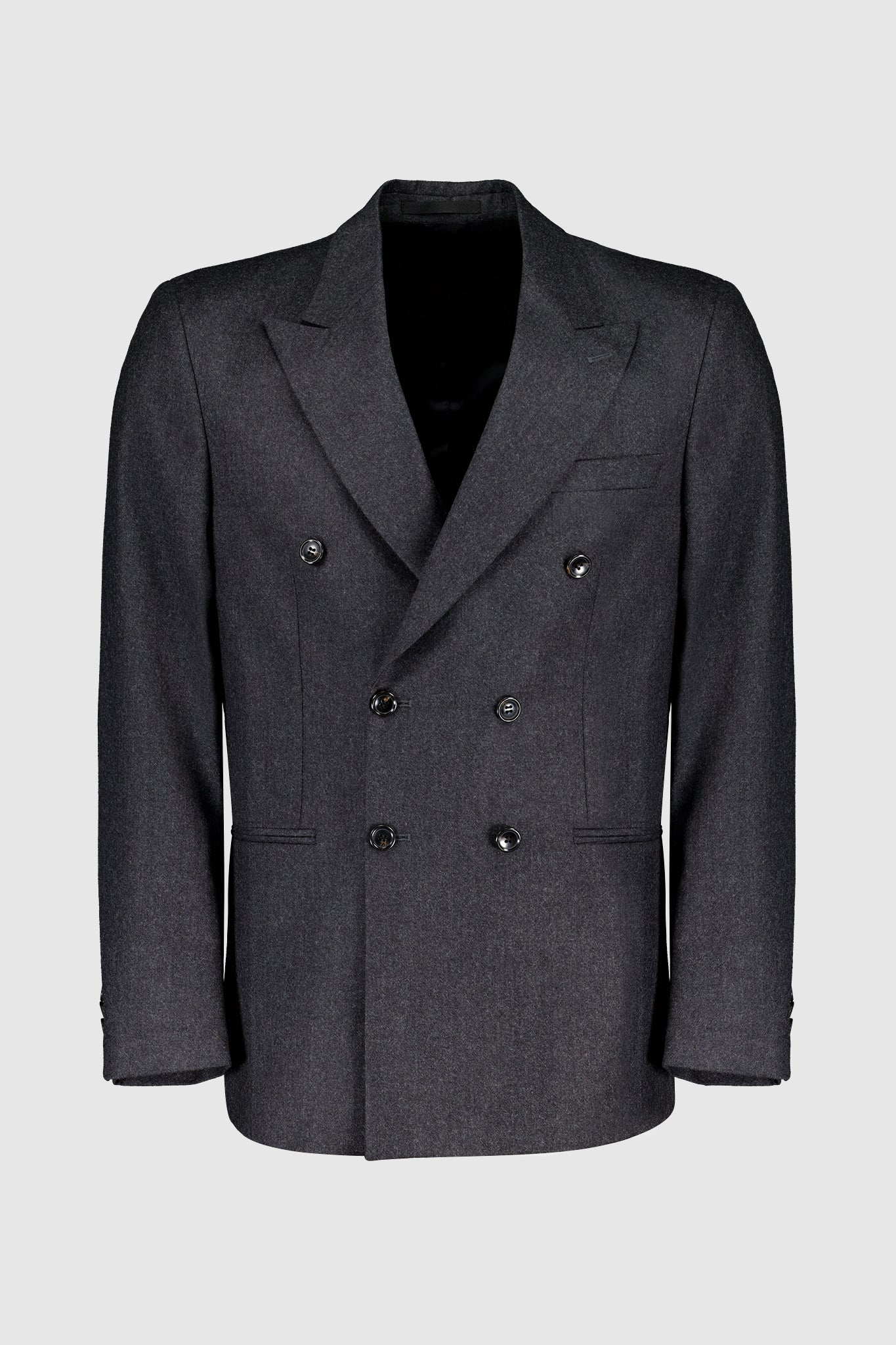 La Giacca Redford Doppio Petto presenta eleganti revers a lancia, raffinate tasche e taschino a filetto, completata da un polsino dritto con tre bottoni.