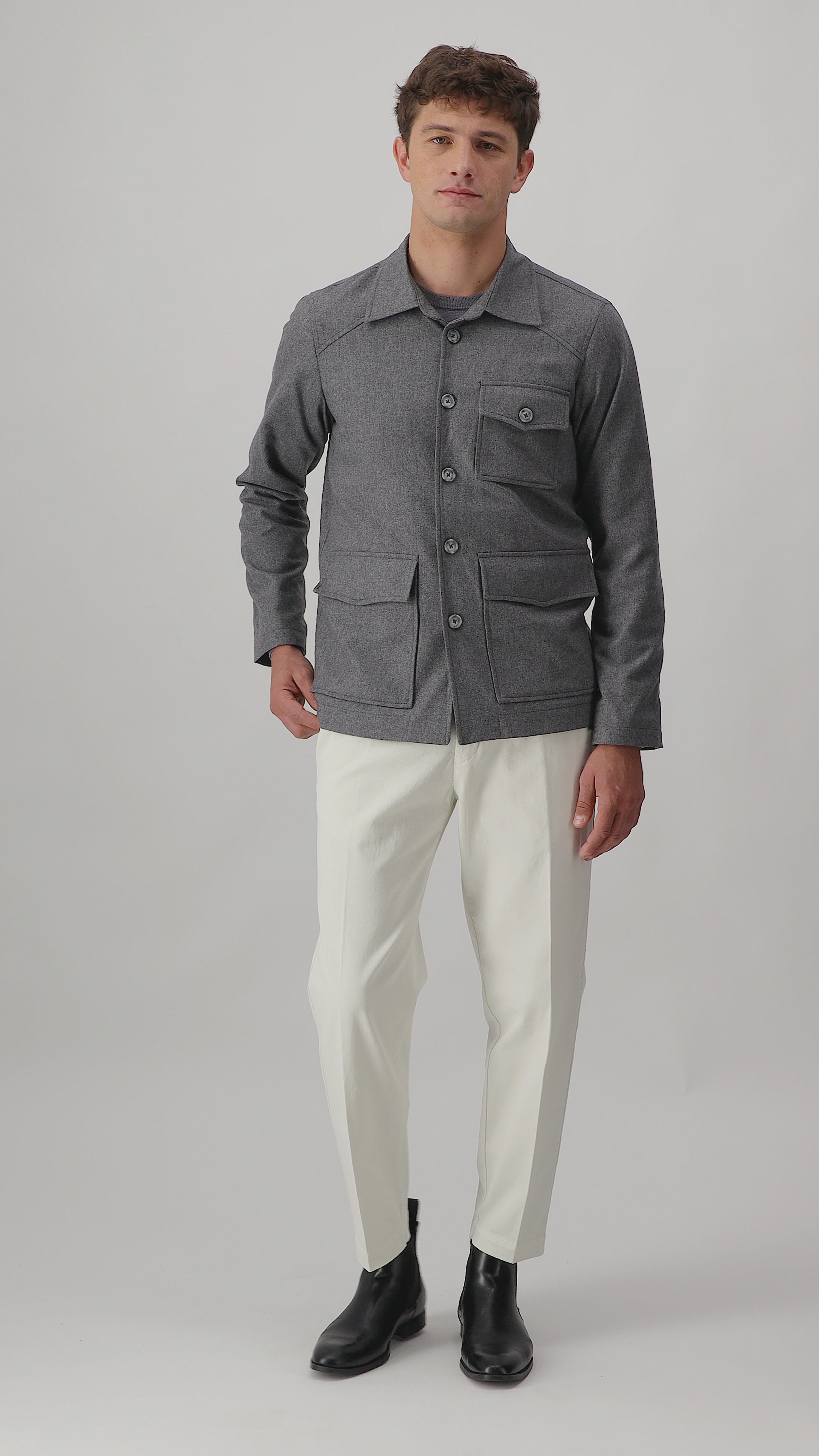 Realizzato in Italia. Giacca in misto cashmere, caratterizzata da una mano morbida e compatta. Il design essenziale, con tasche frontali e chiusura a bottoni, riflette un’eleganza sobria e contemporanea. Un capo raffinato, ideale per completare look formali o casual con un tocco di discreto lusso.