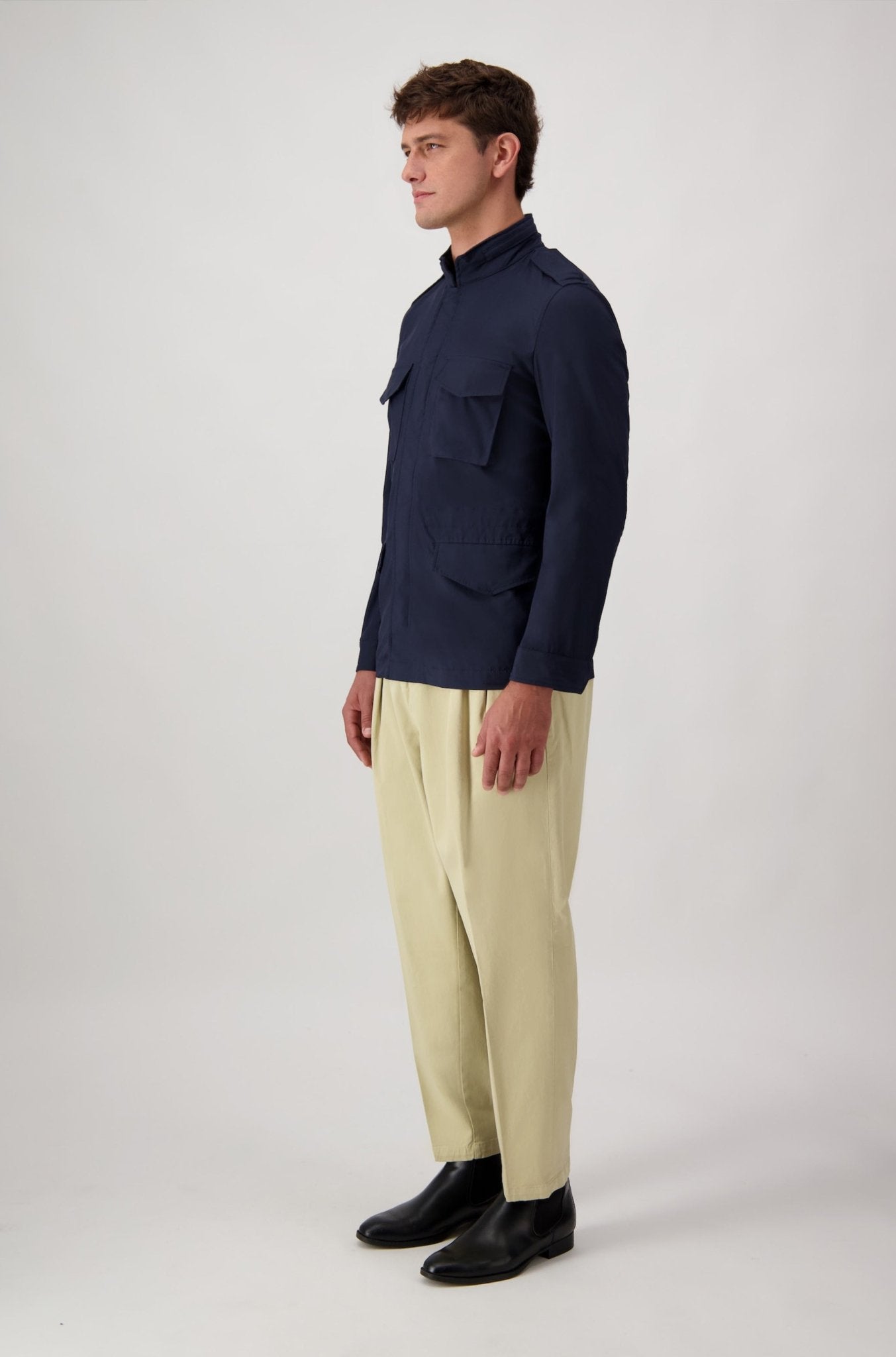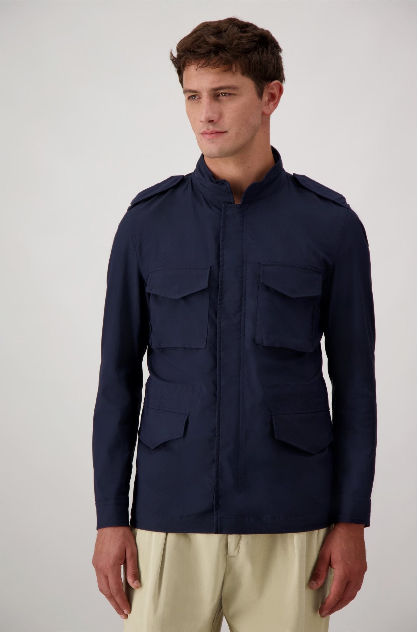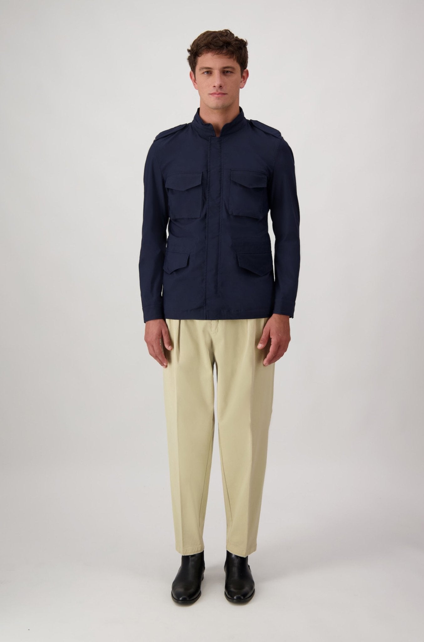 Realizzata in Italia. Giacca in tessuto tecnico leggero, pensata per coniugare funzionalità e stile contemporaneo. Le quattro tasche frontali e la chiusura coperta ne definiscono il carattere pratico e raffinato. Un capo essenziale, ideale per affrontare con eleganza la quotidianità urbana.